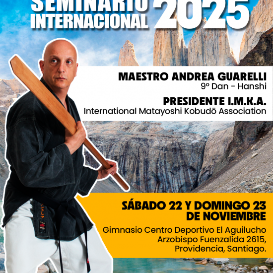 El sábado 22 y domingo 23 de noviembre del presente año realizaremos en Santiago de Chile nuestro Seminario Internacional Matayoshi Kobudō 2025. El Seminario será dictado por el Maestro Andrea Guarelli, 9º Dan, Hanshi, presidente de I.M.K.A. (International Matayoshi Kobudō Association)